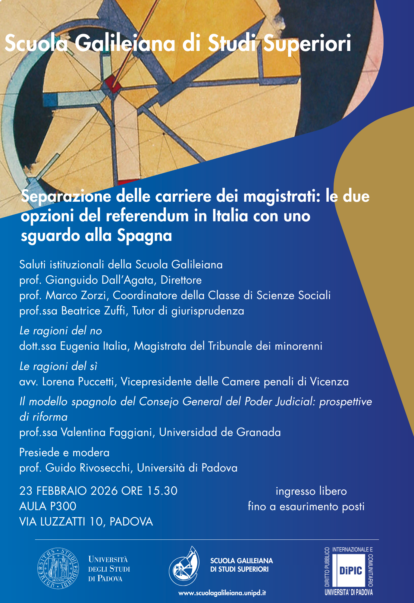 Sono felice di porgere un saluto, un benvenuto e un ringraziamento a nome della Scuola Galileiana a tutti voi per aver voluto condividere con noi questo momento di festa.